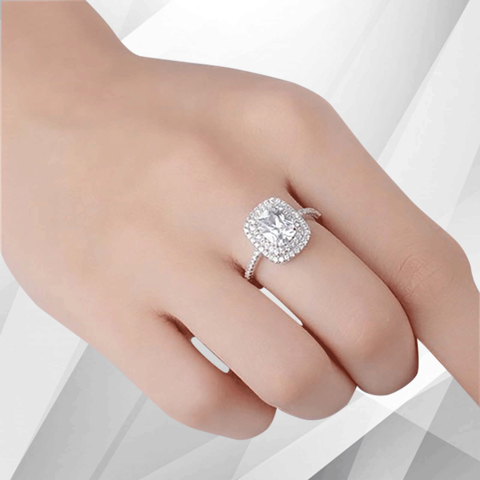 Invest in a ring that symbolizes your love and commitment with the 2.5Ct Square-Cut Diamond Cushion Halo Bridal Engagement Ring. Its timeless design and exceptional quality make it a perfect choice for any bride-to-be.