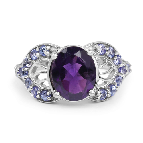 Dropship 2.76 Carat Genuine Amethyst & Tanzanite .925 Sterling Silver Ring