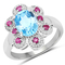 Dropship 2.28 Carat Genuine Swiss Blue Topaz and Ruby .925 Sterling Silver Ring
