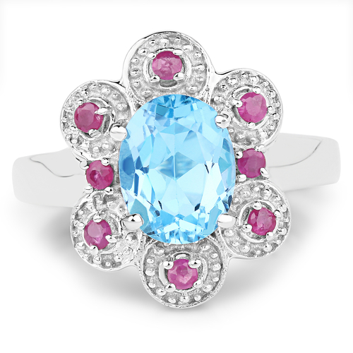 2.28 Carat Genuine Swiss Blue Topaz and Ruby .925 Sterling Silver Ring