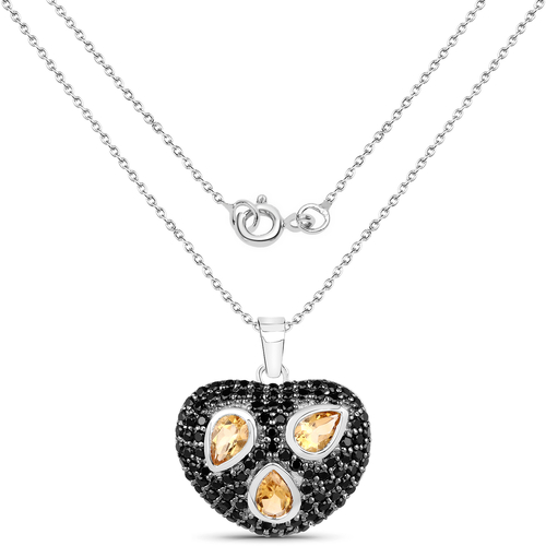2.94 Carat Genuine Citrine & Black Spinel .925 Sterling Silver Pendant