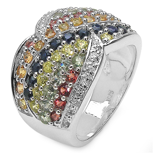 Dropship 3.07 Carat Genuine Multi Sapphire .925 Sterling Silver Ring