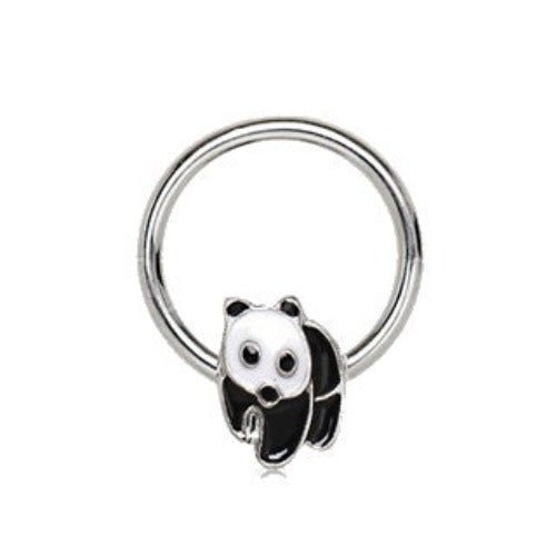 This panda snap-in captive bead ring makes for an excellent gift for friends or loved ones who appreciate unique and stylish body jewelry. Whether it's for a birthday, holiday, or just because, this ring is sure to bring a smile to anyone's face.