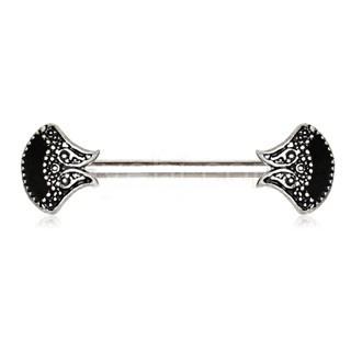 A stylish 316L stainless steel nipple bar featuring an antique fan design with black enamel accents, perfect for body jewelry enthusiasts.