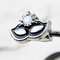 The earring features a beautifully crafted mask design that is inspired by the festive atmosphere of Mardi Gras. The mask is adorned with a striking white synthetic opal at the top, adding a touch of elegance and sparkle. The combination of white and black enamel on the mask enhances its visual appeal, making it a standout piece for any occasion.