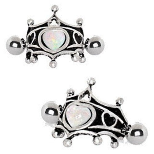 Introducing the exquisite 316L Stainless Steel Medieval Design Heart Crown Cartilage Cuff, a unique piece of jewelry that combines historical inspiration with modern craftsmanship. This cartilage cuff earring is perfect for those who appreciate intricate designs and want to make a statement with their accessories. The centerpiece of this stunning cuff is a heart-shaped white synthetic opal, which adds a touch of elegance and charm to the overall design.