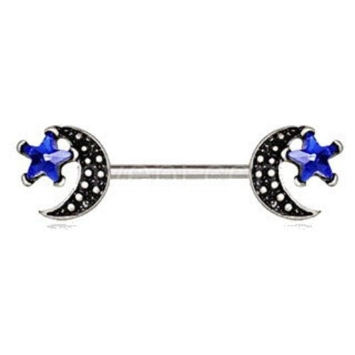 Introducing the exquisite 316L Stainless Steel Moon and Blue Star Nipple Bar, a stunning piece of nipple jewelry that combines celestial beauty with durable craftsmanship. This unique nipple bar features a charming crescent moon paired with a sparkling blue cubic zirconia (CZ) star, making it a perfect accessory for those who love to express their individuality through body jewelry.