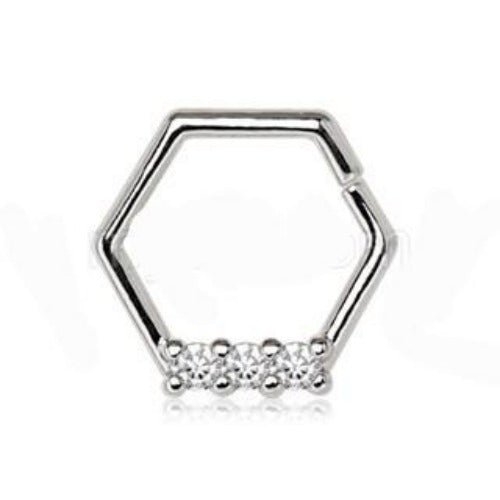 The 316L Stainless Steel Multi Jeweled Hexagon Captive Bead Ring is a stunning piece of jewelry that combines style and functionality. Crafted from high-quality 316L stainless steel, this ring is not only durable but also resistant to tarnishing and corrosion, making it an ideal choice for everyday wear. Its unique hexagon shape with a cut-off design sets it apart from traditional captive bead rings, giving it a modern and edgy look that is sure to catch the eye.