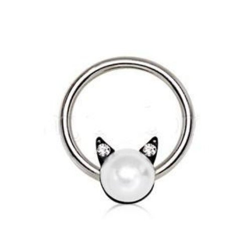 Introducing our exquisite 316L Stainless Steel Pearl Cat Snap-in Captive Bead Ring, a perfect blend of style and durability. This unique piece of jewelry features a charming cat design, making it an ideal choice for those who appreciate whimsical yet elegant accessories. The ring is not only a stunning piece of art but also a versatile addition to your jewelry collection, suitable for both captive bead rings and septum jewelry.