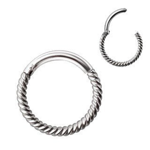 Introducing our exquisite 316L Stainless Steel Rope Design Seamless Clicker Ring, a perfect blend of style and functionality. This clicker ring features a unique rope design on the bottom part, making it a standout accessory for anyone looking to enhance their piercing collection. Crafted from high-quality 316L stainless steel, this ring is not only visually appealing but also durable and resistant to tarnishing, ensuring it maintains its shine over time.