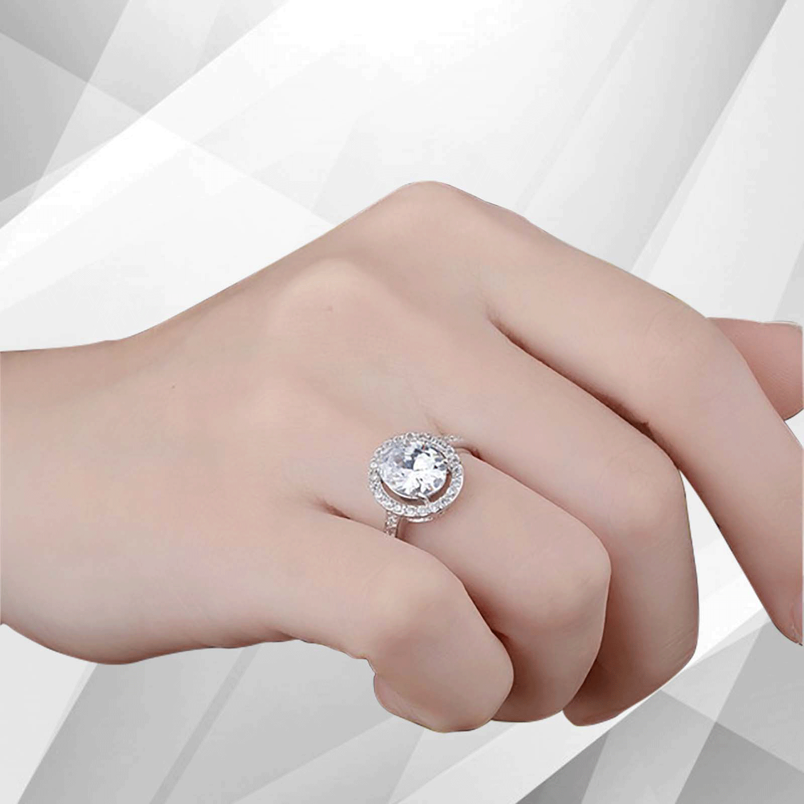 Our engagement ring is made from high-quality materials, ensuring durability and longevity. The ring is constructed from 100% brass, finished with a luxurious 18Ct white gold overlay. This combination not only enhances the ring's beauty but also provides a lasting shine that will endure through the years. The meticulous craftsmanship involved in creating this ring guarantees that it will be a cherished piece for a lifetime.