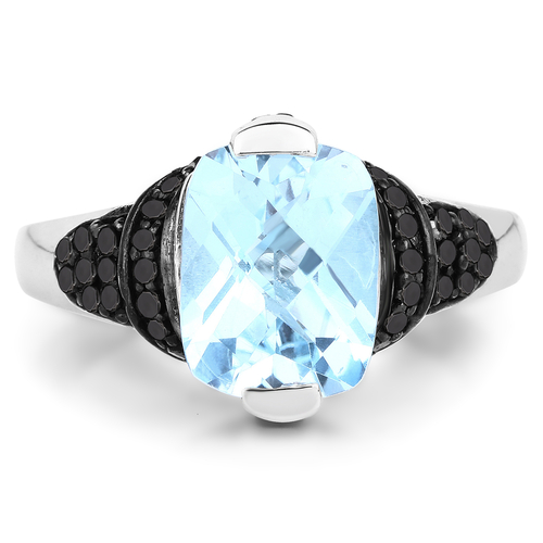 3.81 Carat Genuine Baby Swiss Blue Topaz, Black Diamond and White