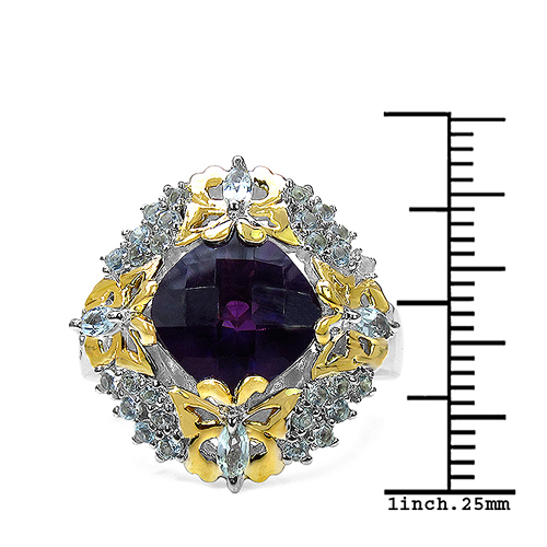 Dropship 3.91 Carat Genuine Amethyst, Blue Topaz & White Diamond .925 Sterling