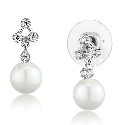 The earrings are made from premium brass, known for its strength and longevity. The rhodium finish enhances the overall aesthetic, providing a shiny, reflective surface that complements the white synthetic pearl beautifully. This combination of materials ensures that the earrings maintain their stunning appearance over time, making them a worthwhile addition to your jewelry collection.