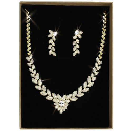 The jewelry set is made from premium brass, known for its strength and resistance to tarnishing. The gold finish adds a touch of glamour, making it an ideal accessory for both casual and formal outfits. Whether you're dressing up for a wedding, a night out, or simply want to add a touch of elegance to your everyday look, this jewelry set is the perfect choice.