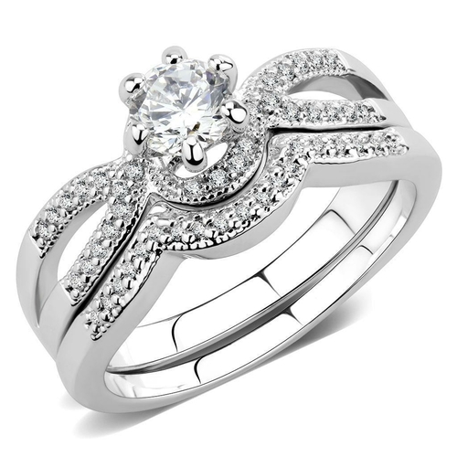 Dropship 3W1592 - Rhodium Brass Ring with AAA Grade CZ in Clear