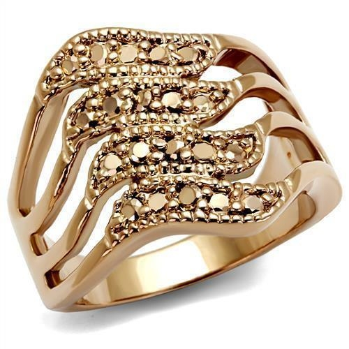 The 3W1196 ring is made from premium brass, known for its durability and resistance to tarnishing. The IP Rose Gold ion plating adds a rich, warm hue that complements a variety of skin tones and outfits. This finish not only enhances the ring's aesthetic but also provides an extra layer of protection against scratches and wear.