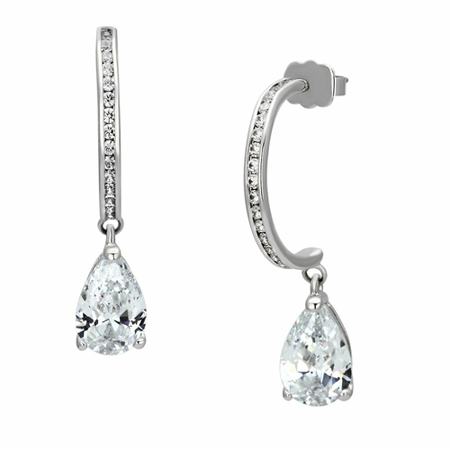 Dropship 3W529 - Rhodium Brass Earrings with AAA Grade CZ in Clear