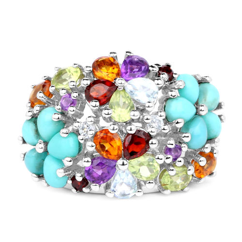 Dropship 4.03 Carat Genuine Multi Stones .925 Sterling Silver Ring