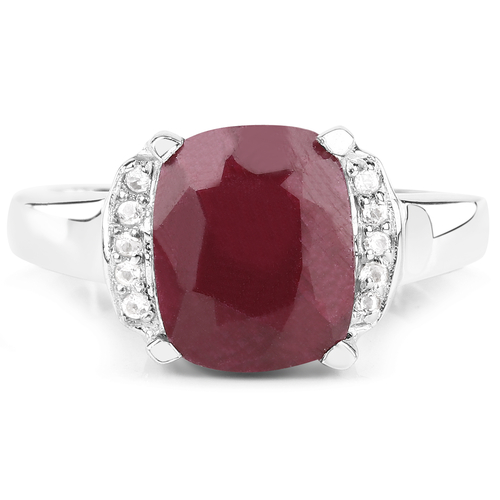 4.05 Carat Dyed Ruby and White Topaz .925 Sterling Silver Ring