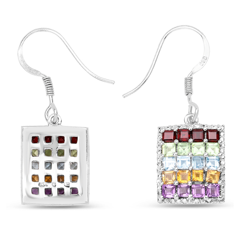 4.32 Carat Genuine Multi Stones .925 Sterling Silver Earrings