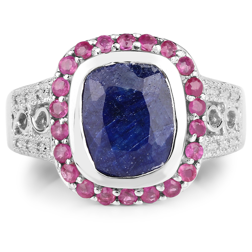 Dropship 4.55 Carat Dyed Sapphire and Ruby .925 Sterling Silver Ring
