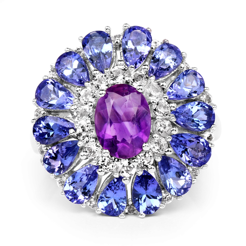 Dropship 4.86 Carat Genuine Amethyst, Tanzanite and White Topaz .925 Sterling