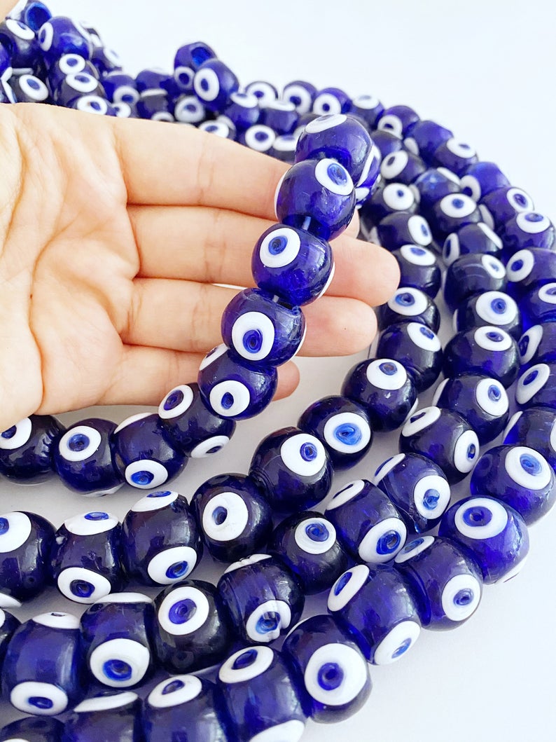 Introducing our exquisite collection of 50 pcs Chunky Evil Eye Beads, meticulously crafted to enhance your jewelry-making experience. These artisan handmade glass beads are not only visually stunning but also carry a rich cultural significance. The evil eye symbol is believed to provide protection against negative energies, making these beads a meaningful addition to your creations.