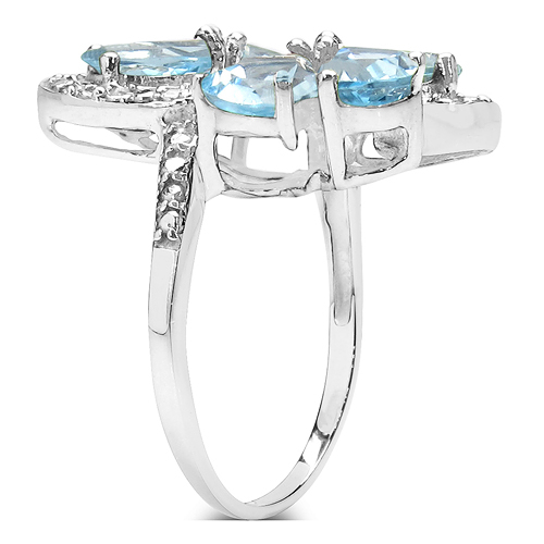 5.13 Carat Genuine Blue Topaz & White Topaz .925 Sterling Silver Ring