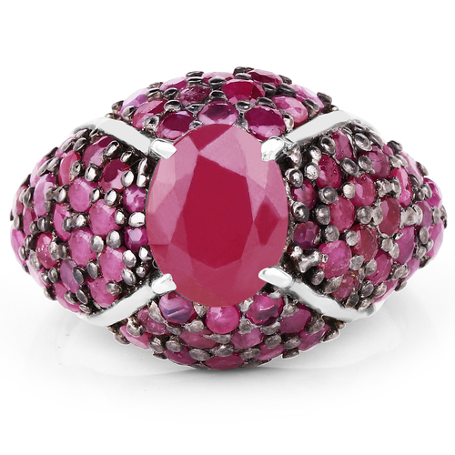 5.15 Carat Genuine Glass Filled Ruby & Ruby .925 Sterling Silver Ring