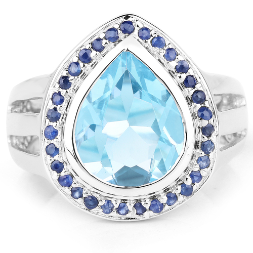 5.42 Carat Genuine Blue Topaz and Blue Sapphire .925 Sterling Silver