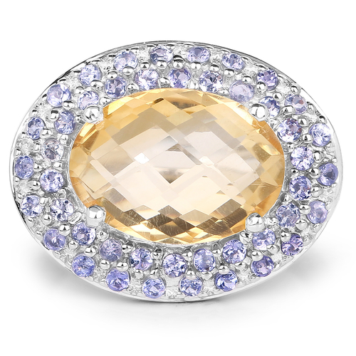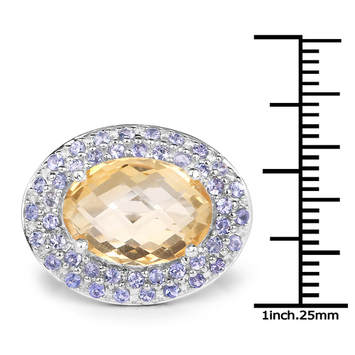 5.78 Carat Genuine Citrine and Tanzanite .925 Sterling Silver Ring