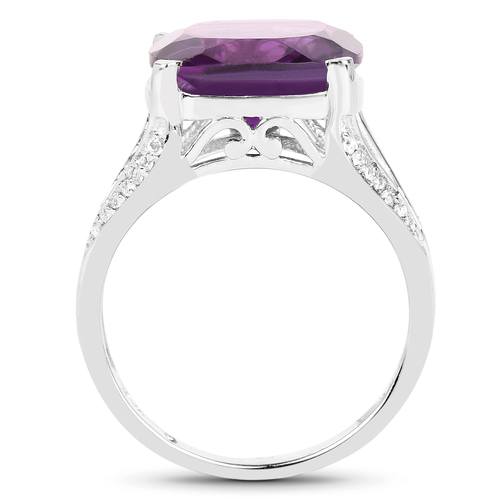 5.99 Carat Genuine Amethyst and White Topaz .925 Sterling Silver Ring