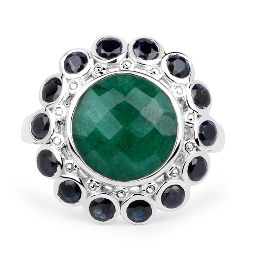 6.88 Carat Dyed Emerald & Blue Sapphire .925 Sterling Silver Ring