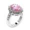 The center stone features a captivating rose color, adding a touch of romance and femininity to the design. This unique hue makes the ring stand out, allowing it to complement a variety of outfits, from casual wear to formal attire. Whether you're dressing up for a special occasion or adding a touch of elegance to your everyday look, this ring is sure to impress.