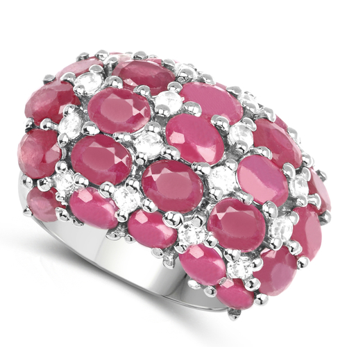 8.54 Carat Glass Filled Ruby and White Topaz .925 Sterling Silver Ring