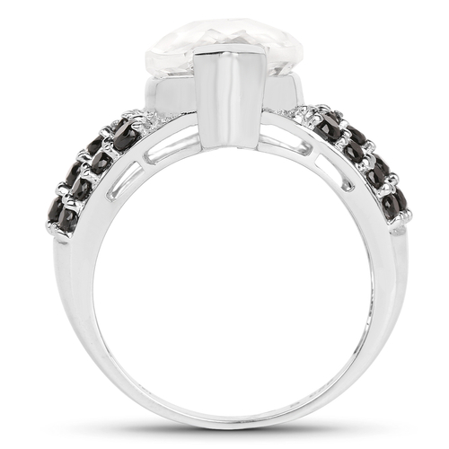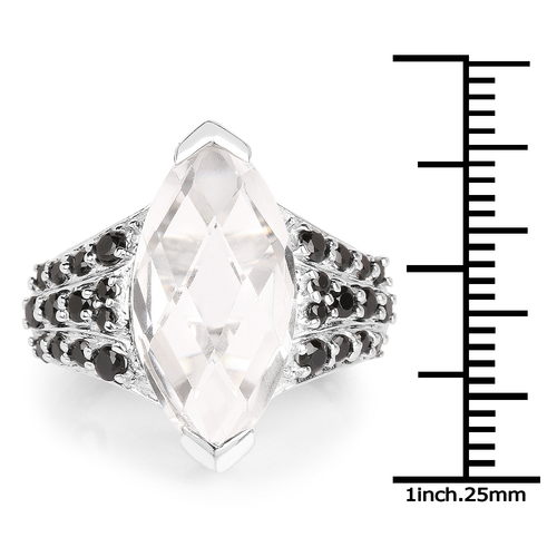 8.75 Carat Genuine Crystal Quartz & Black Spinel .925 Sterling Silver