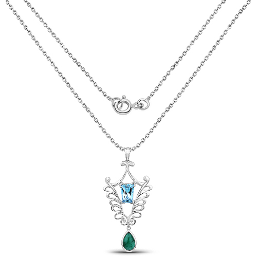 Dropship 9.23 Carat Genuine Emerald and Swiss Blue Topaz .925 Sterling Silver