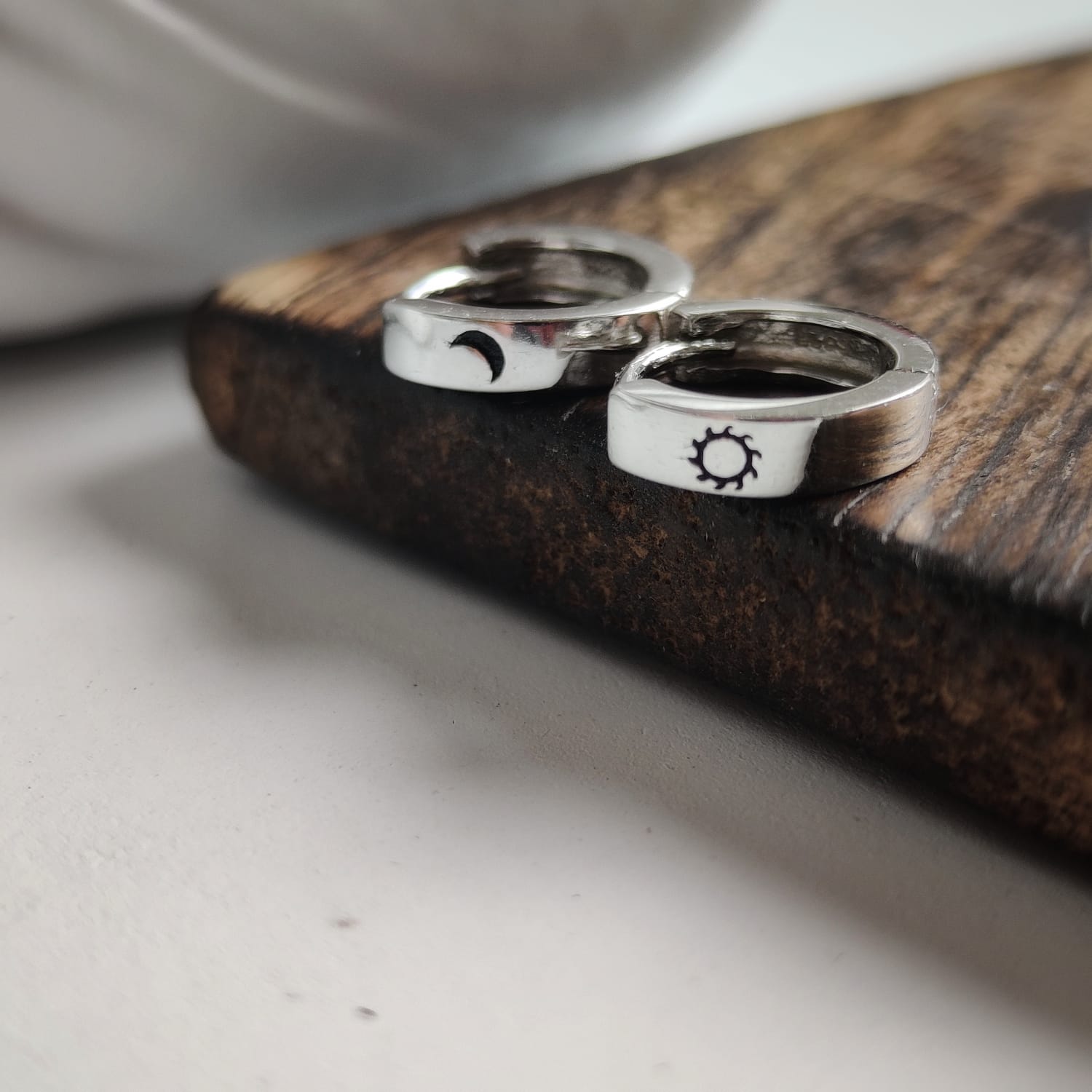 Dropship 925 Silver Slim Sun Moon Minimalist Dainty Steampunk Unisex Hoop