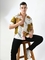 Abstract Printed Full Sleeves Casual Shirt-beige&white (Size-S)