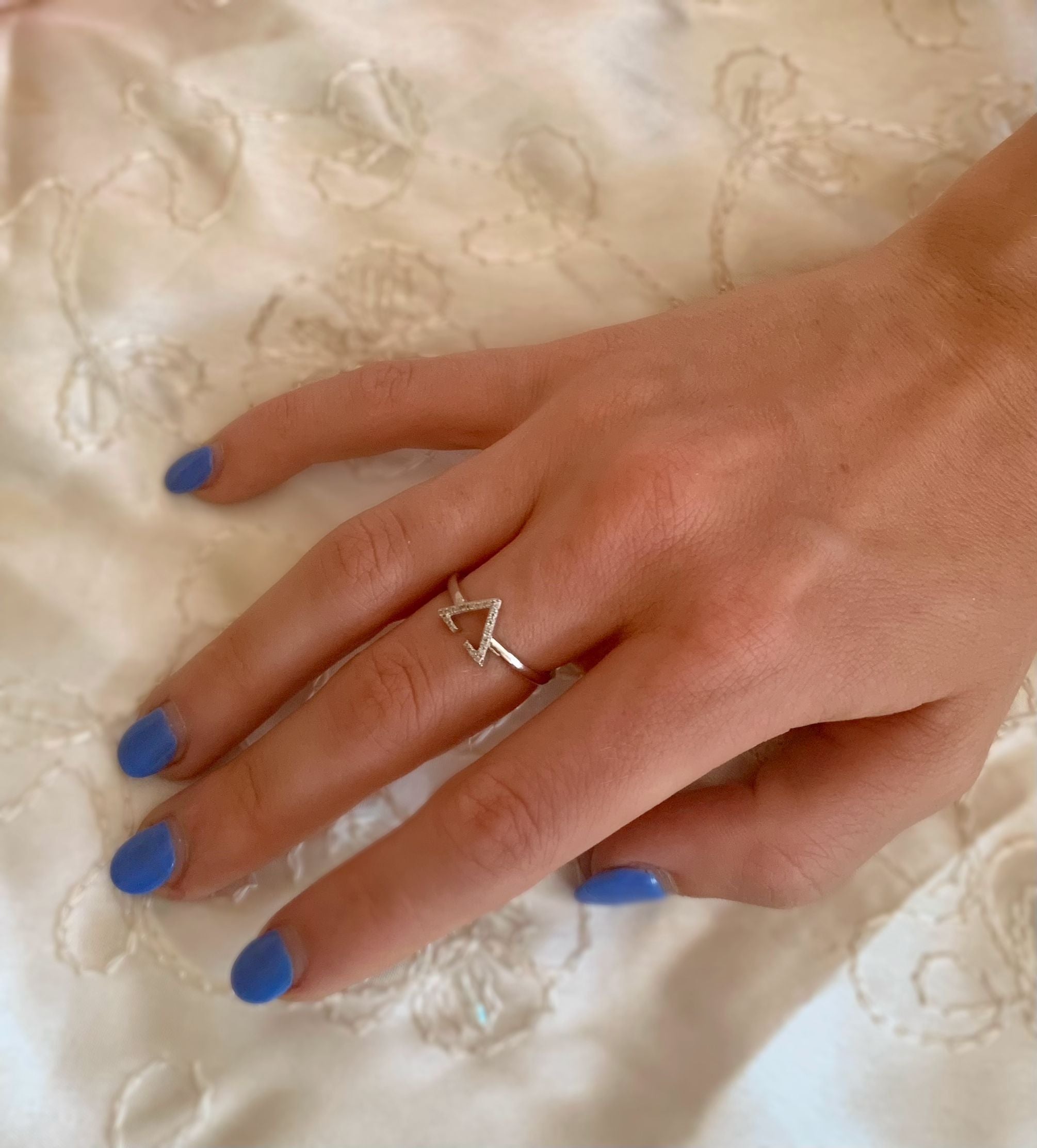 To keep your Aim High Open Triangle Diamond Ring looking its best, it is essential to follow some simple care instructions. Avoid exposing the ring to harsh chemicals or abrasive materials, as these can damage the silver and the diamonds. Clean the ring regularly with a soft cloth to maintain its shine, and store it in a jewelry box when not in use to prevent scratches.