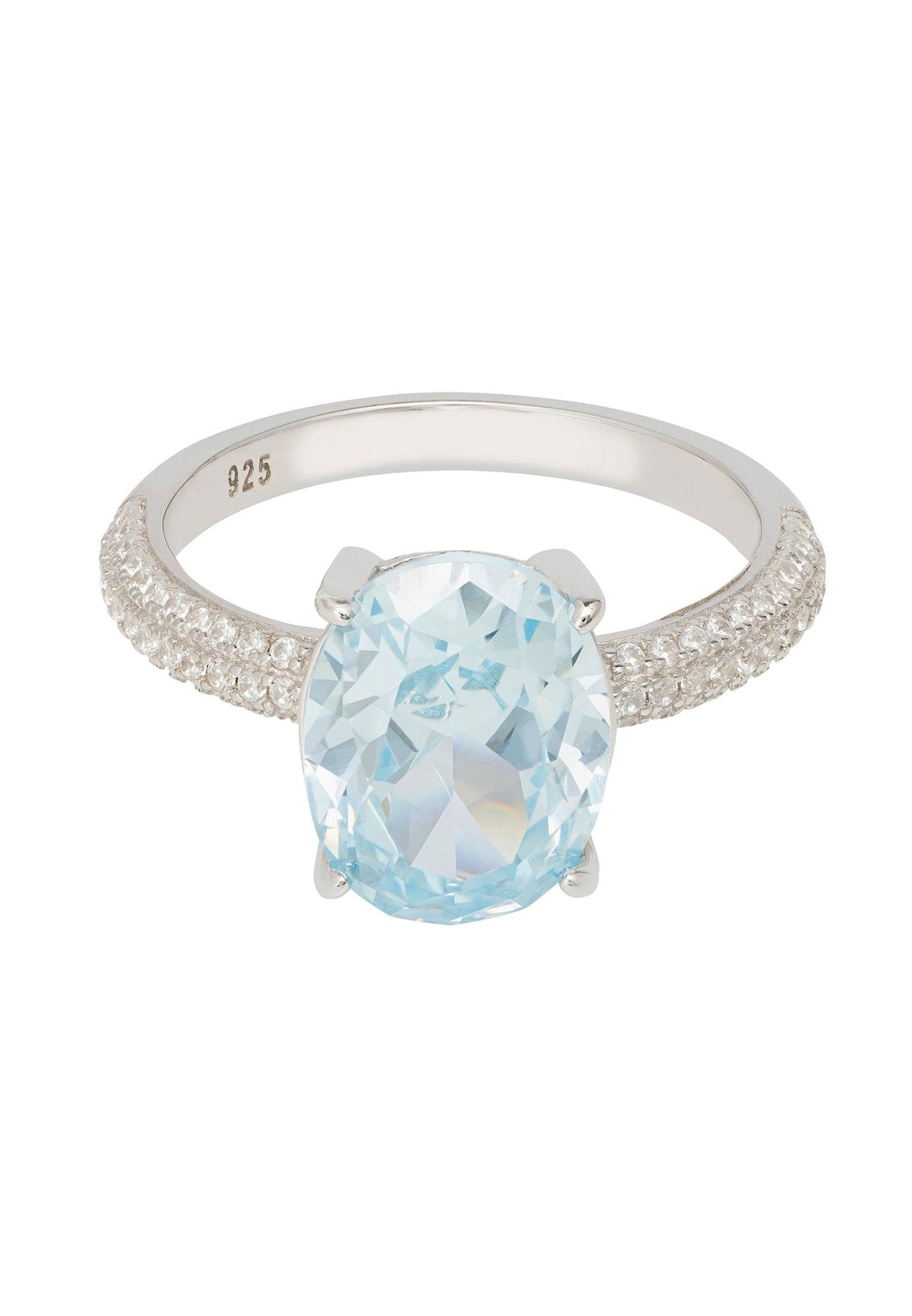 Introducing the exquisite Alexandra Oval Cocktail Ring, a stunning piece of jewelry that combines elegance and sophistication. Crafted from high-quality 925 sterling silver, this ring features a breathtaking oval lab-created blue topaz that captures the light beautifully, making it a perfect accessory for any occasion. Whether you're attending a formal event or a casual gathering, this ring is sure to turn heads and make you feel like a star.