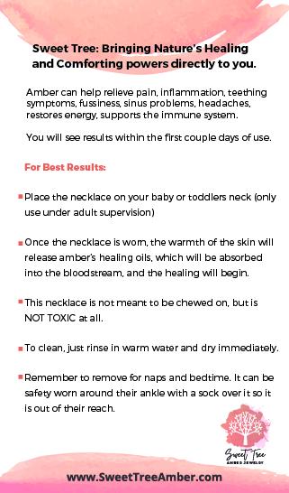 Amber has been used for centuries as a natural remedy for teething pain. When worn against the skin, the warmth of the body releases succinic acid from the Amber, which is believed to have anti-inflammatory properties. This can help ease the pain and discomfort associated with teething, making it a popular choice among parents looking for natural solutions.