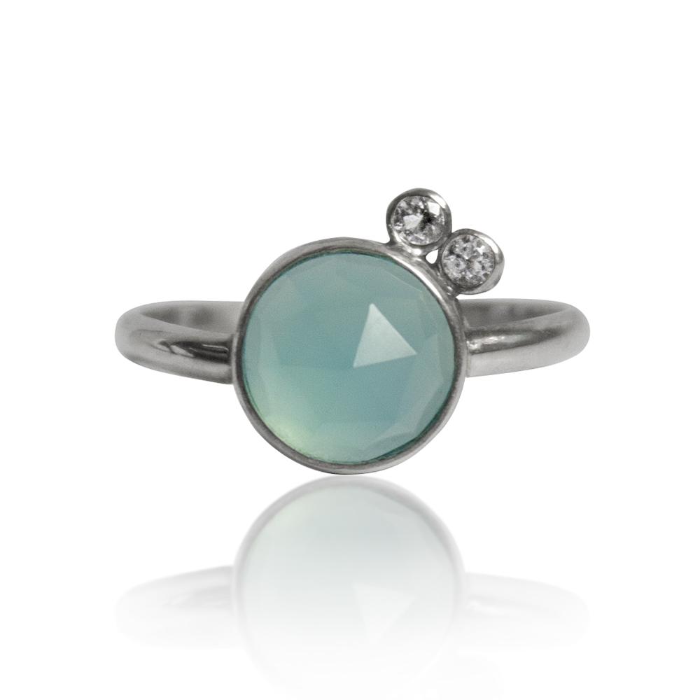 We take pride in using ethically sourced materials in our jewelry. The aqua chalcedony and white topaz stones are selected for their quality and beauty, ensuring that you not only look good but feel good about your purchase. Our commitment to ethical sourcing means that you can wear this ring with confidence, knowing that it was made with respect for the environment and the communities involved in its creation.