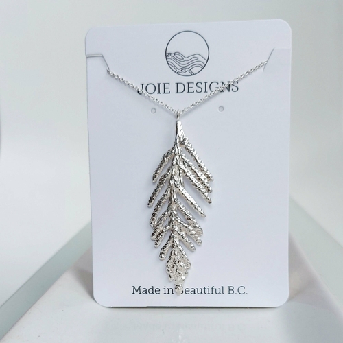 The Arborvitae Cedar Necklace is a stunning piece of jewelry that beautifully combines nature and artistry. This necklace features a larger-than-life cedar leaf design, making it a bold statement accessory for any outfit. Crafted from high-quality BC cedar, this necklace is not only visually striking but also carries the essence of the great outdoors.
