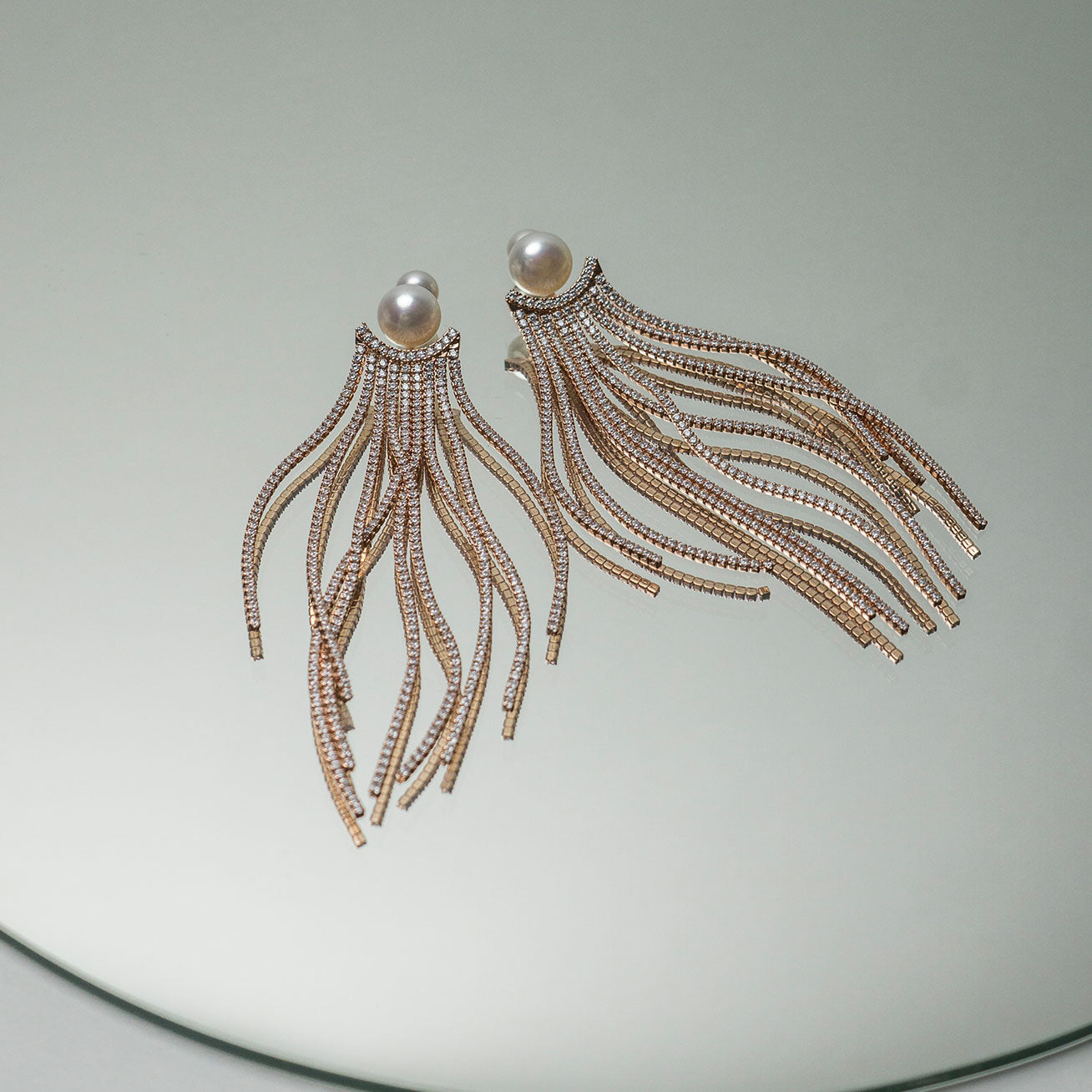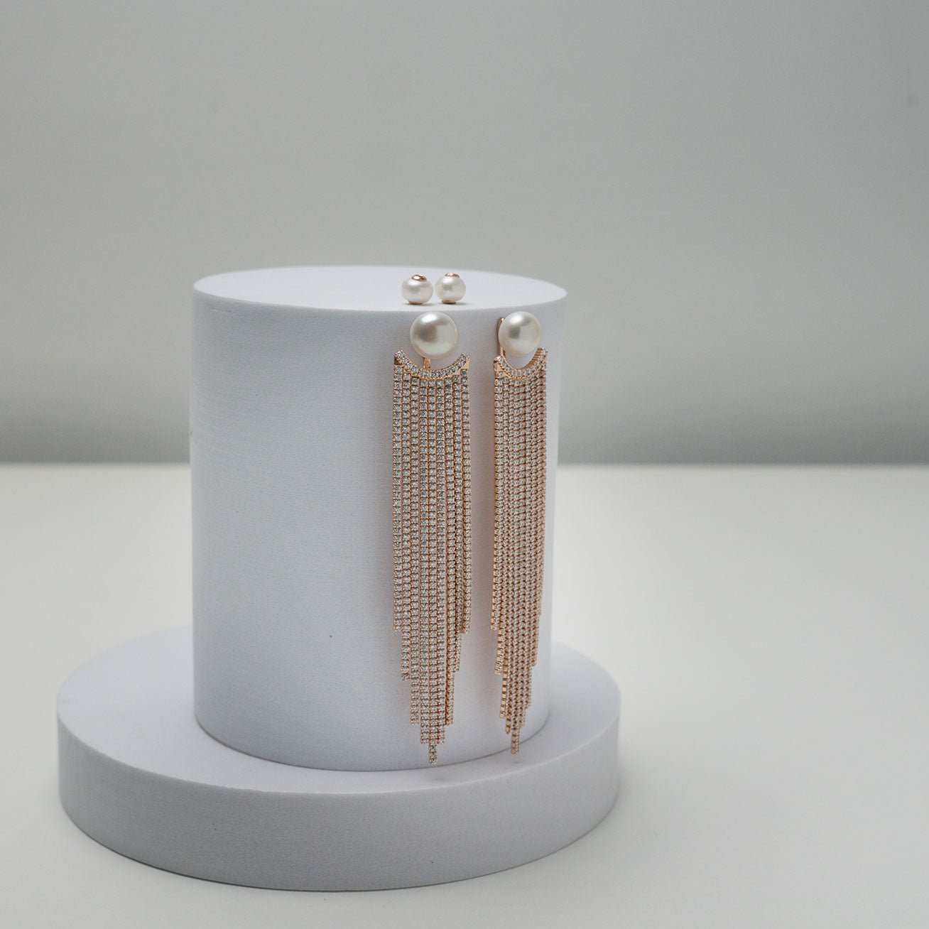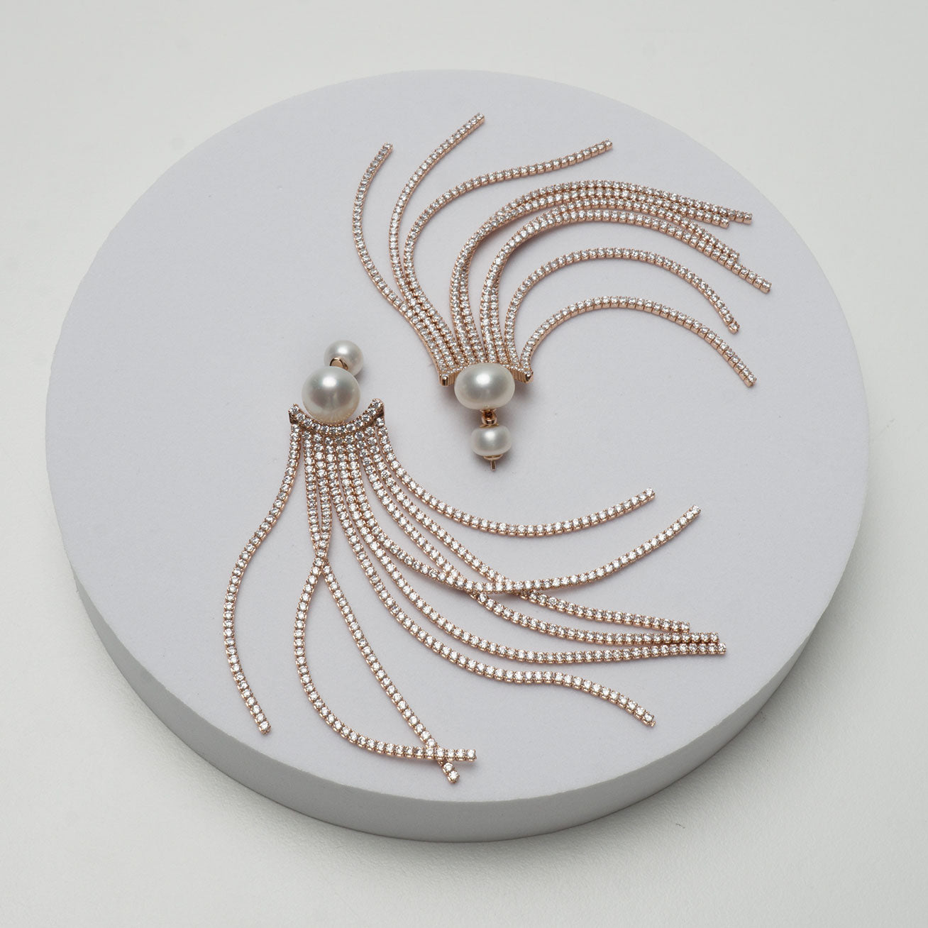 Whether you're dressing up for a dinner date or looking for the perfect accessory for a special occasion, these earrings are a sophisticated choice. Their elegant design and subtle rose gold color make them versatile enough to complement a variety of outfits, from casual to formal. The size of the earrings, measuring 10cm, ensures they make a statement without being overpowering.