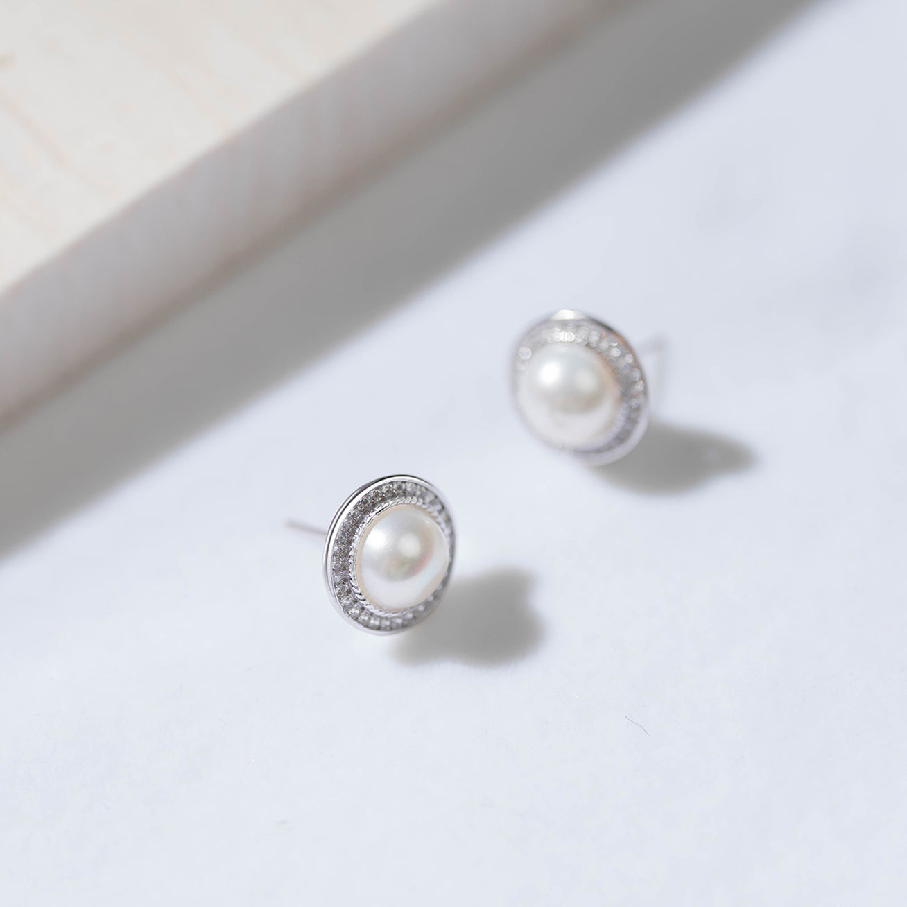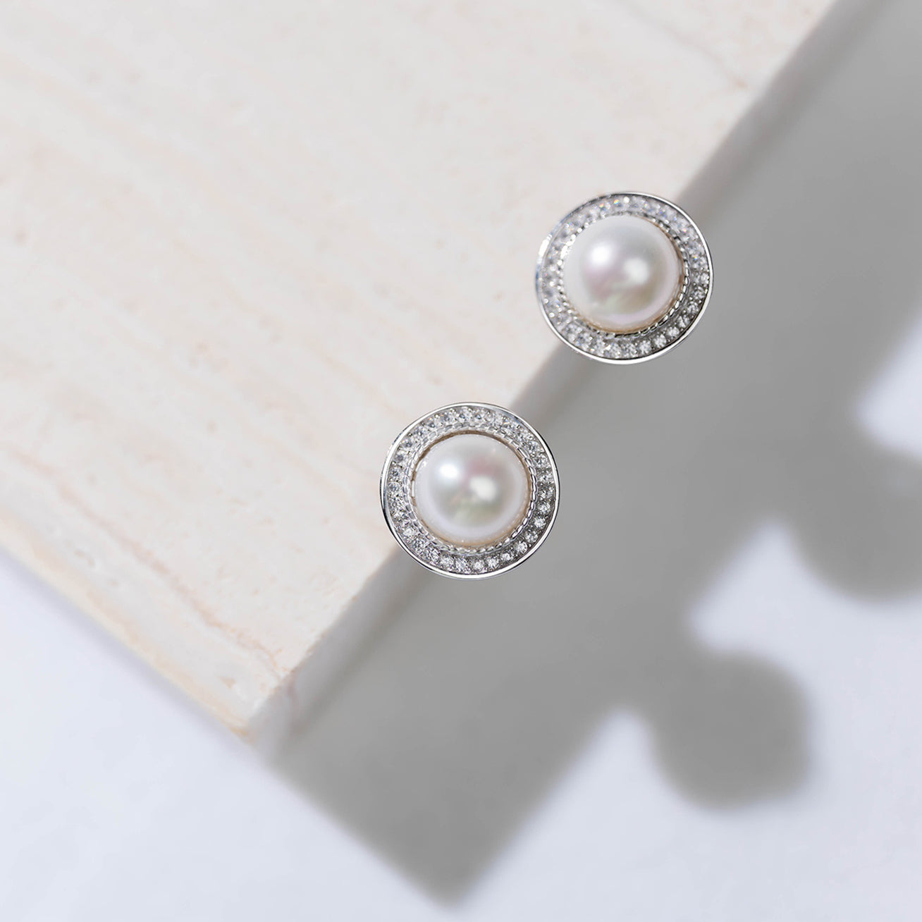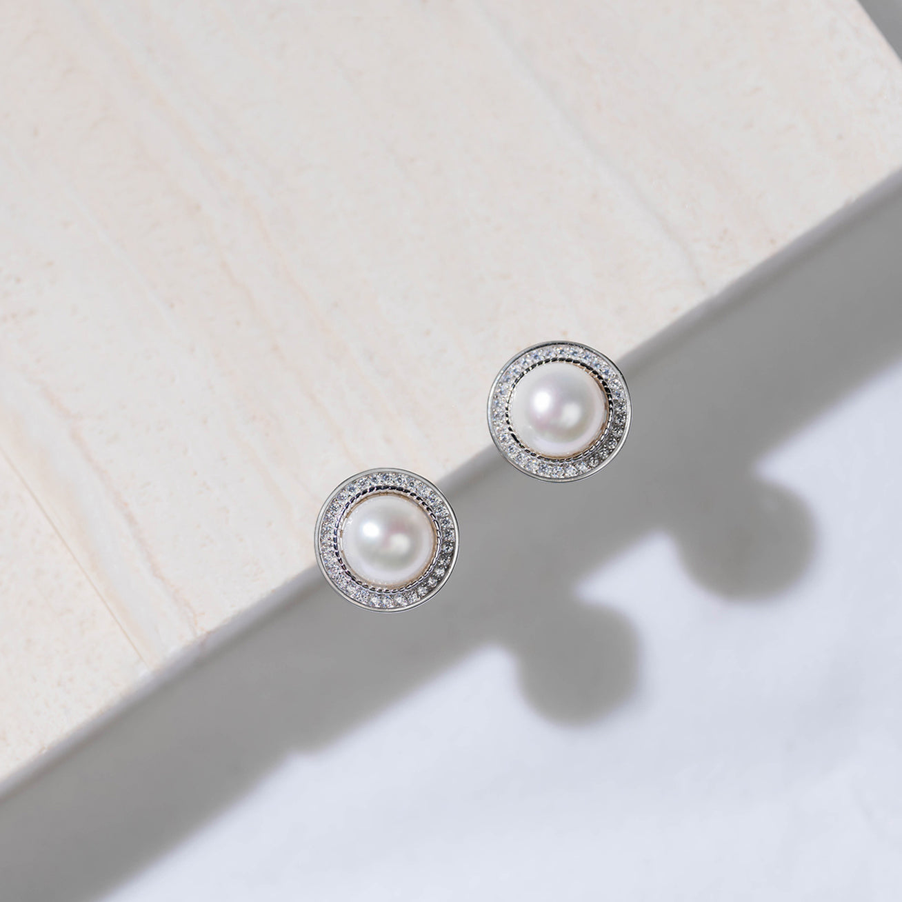 Crafted from high-quality sterling silver, these earrings are plated with 18K white gold, providing a luxurious finish that complements the pearls perfectly. The use of sterling silver not only enhances durability but also ensures that the earrings are hypoallergenic, making them suitable for sensitive skin. Additionally, the earrings are adorned with cubic zirconia gemstones, adding an extra sparkle that elevates their overall appeal.