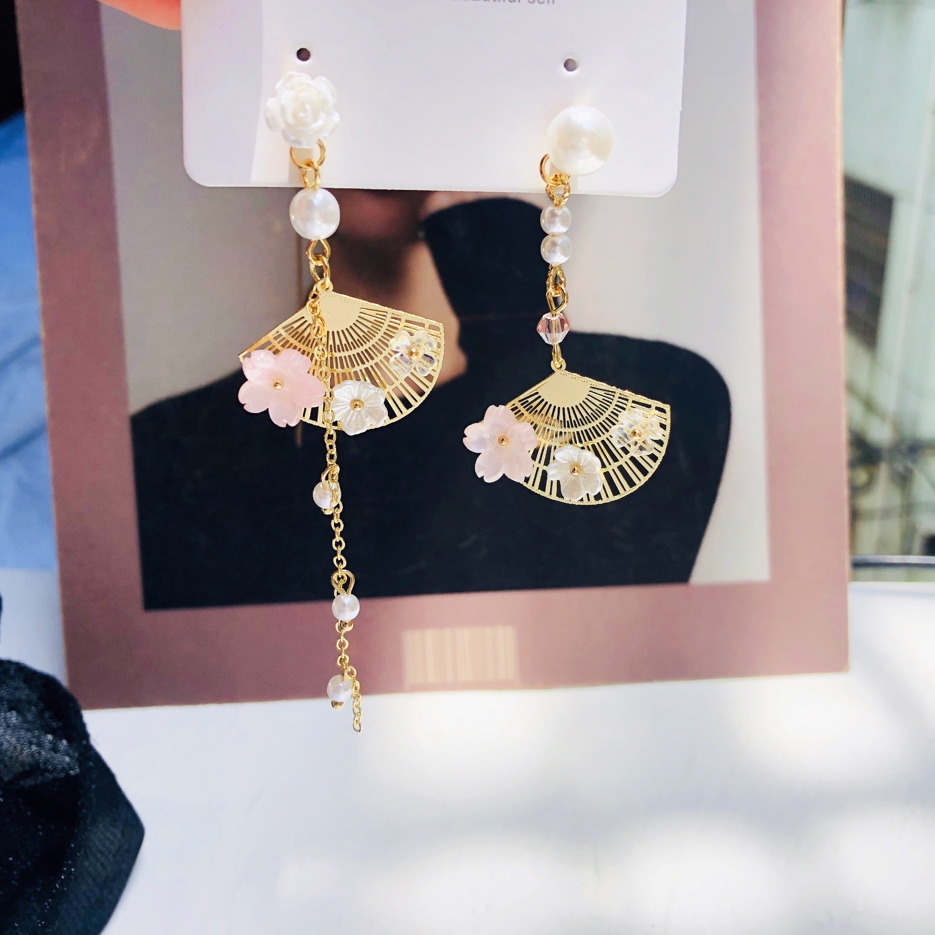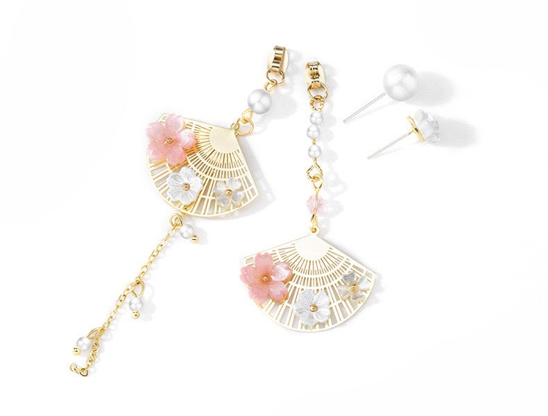 Dropship Asymmetric Oriental Flower-on-Fan Earrings