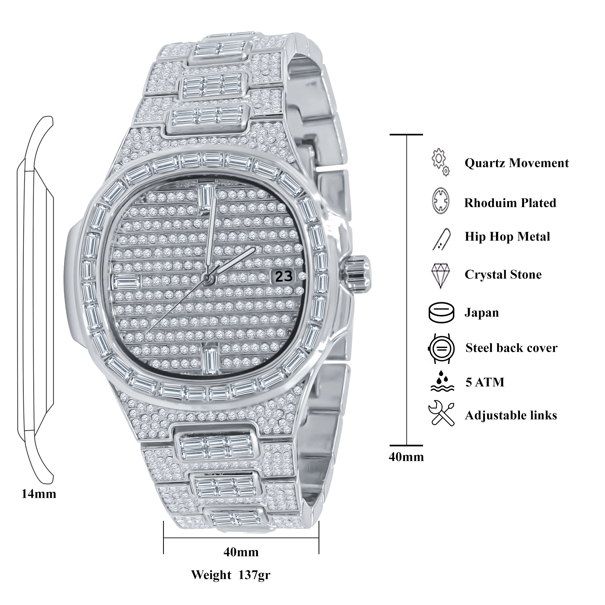Made from high-quality stainless steel, the ATTITUDE Hip Hop Metal Watch is designed to withstand the test of time. Its robust construction ensures that it can handle daily wear and tear while maintaining its stunning appearance. The steel back cover adds an extra layer of durability, making it a reliable choice for any watch enthusiast.