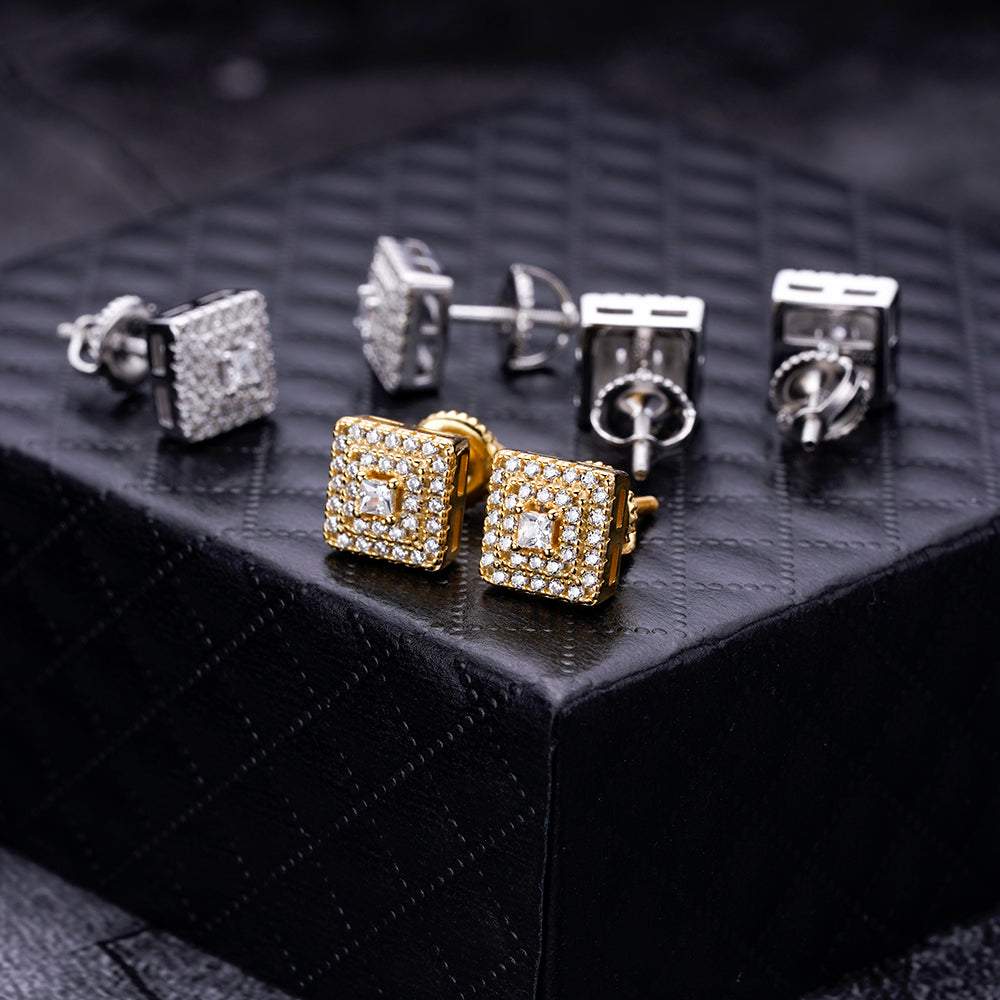 The ATRACTIVO Sterling Silver CZ Earrings are a stunning addition to any jewelry collection. These exquisite ear studs feature a unique square shape that is both modern and timeless. The centerpiece of each earring is a twinkling stone, surrounded by a halo of minute cubic zirconia stones that enhance their brilliance and allure. Perfect for both casual and formal occasions, these earrings allow you to express your personality with elegance.